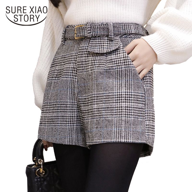 2017 new autumn winter fashion a word wide leg shorts Women vintage high waist casual large size wool shorts C934 30
