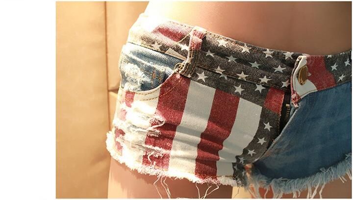 2017 New Brand Women Denim Shorts Summer Mini Shorts USA Flag Print Sexy Hole Destroyed Jeans Short Pants Feminino Plus Size
