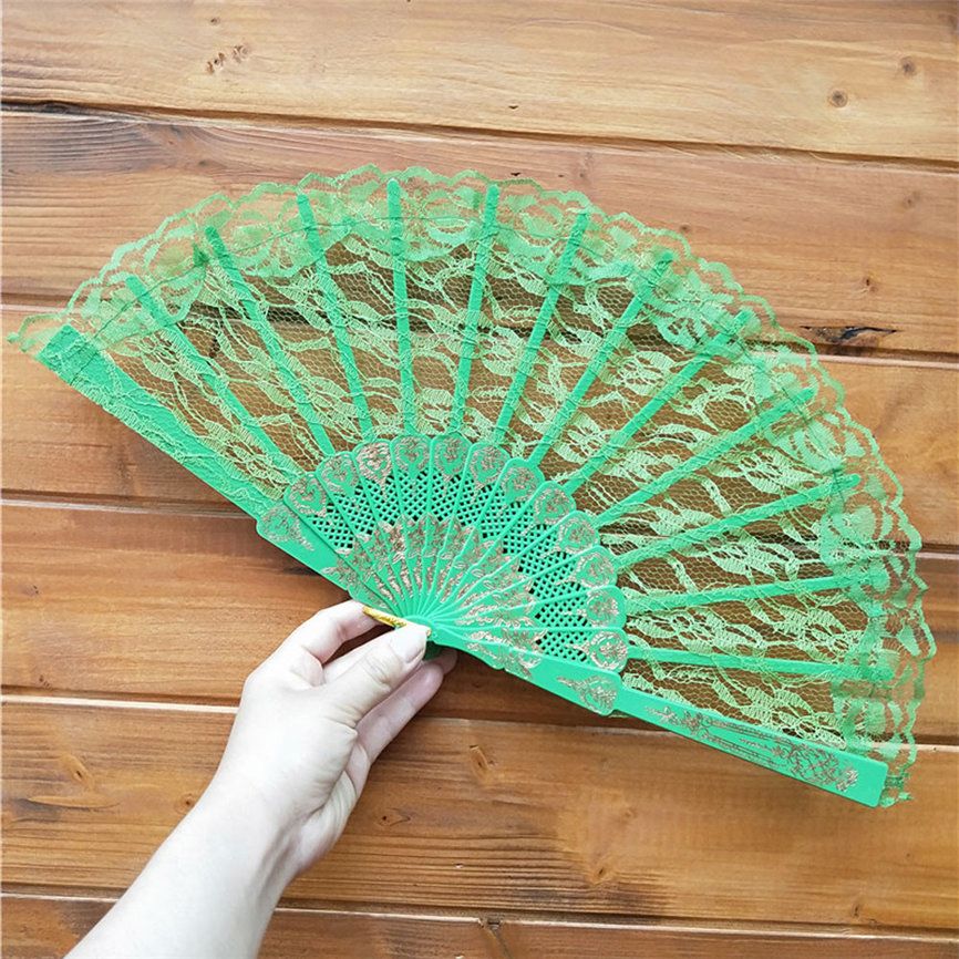 Buy 2018 Hand Held Fan Folding Wedding Dance Decor Style 1 Pcs Folding Fan Lace Party Chinese Dropshipping in Nigeria