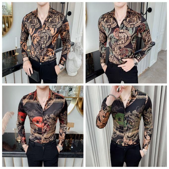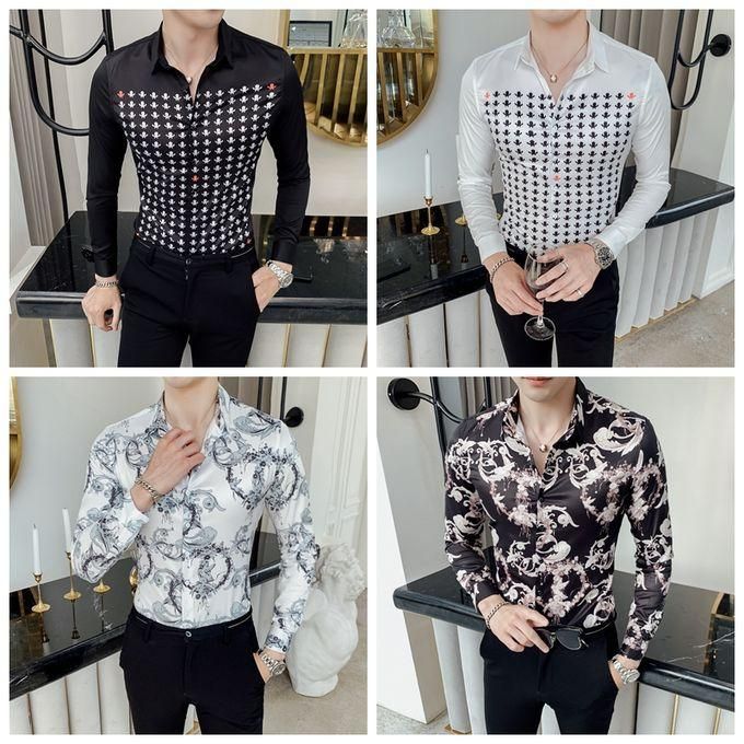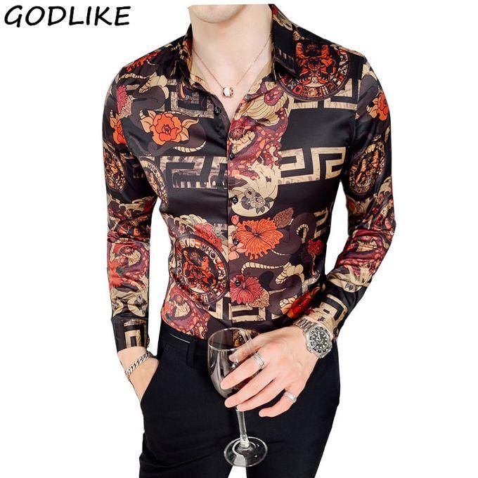 1X 2019 Autumn Flower Shirt Mens Club Long Sleeve Shirt Slim Fit Fancy Shirts Casual Shirts Men Camisa Social Masculina
