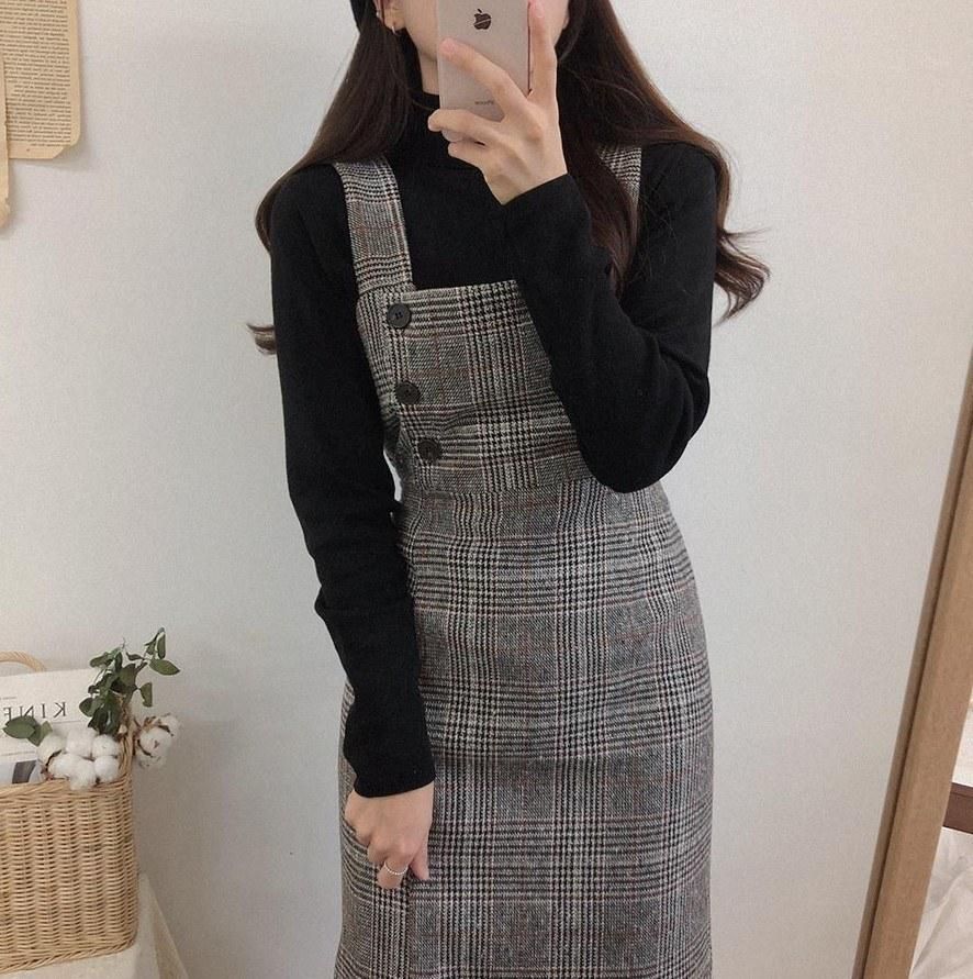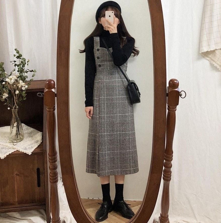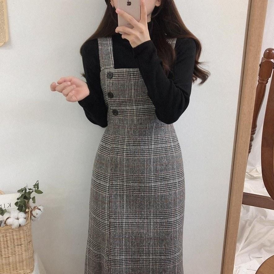 Buy 2019 Korean version of the autumn and winter retro plaid woolen vest dress ghost horse girl suspender skirt Color XL in Nigeria