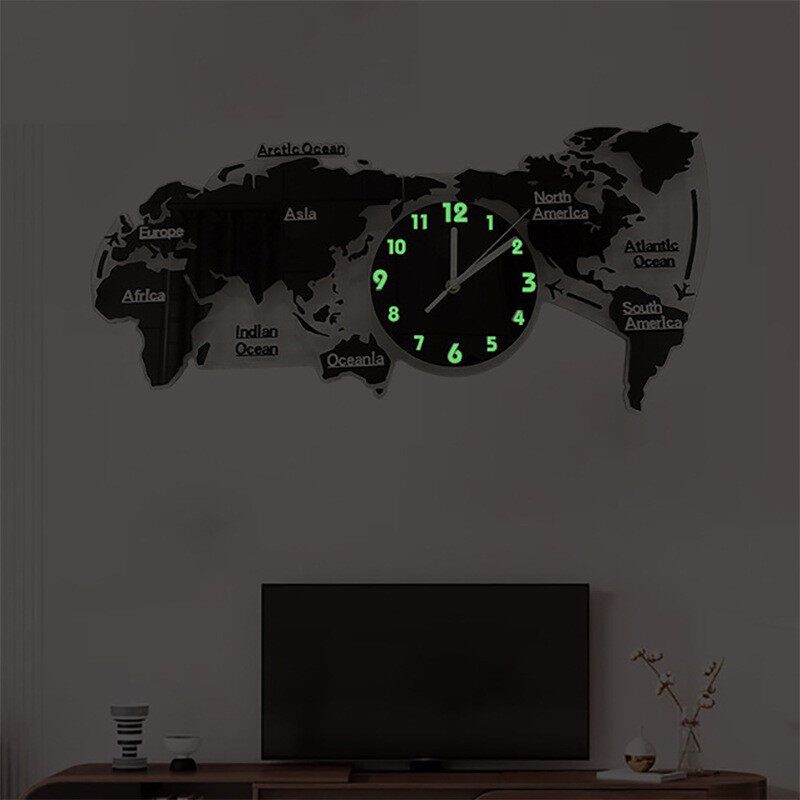 [2020 NEW] 3D World Map Wall Clock Modern Design Digital Hanging Clock Quiet Acrylic