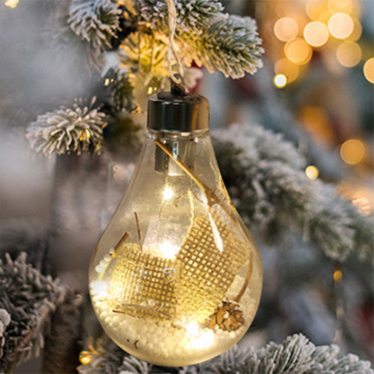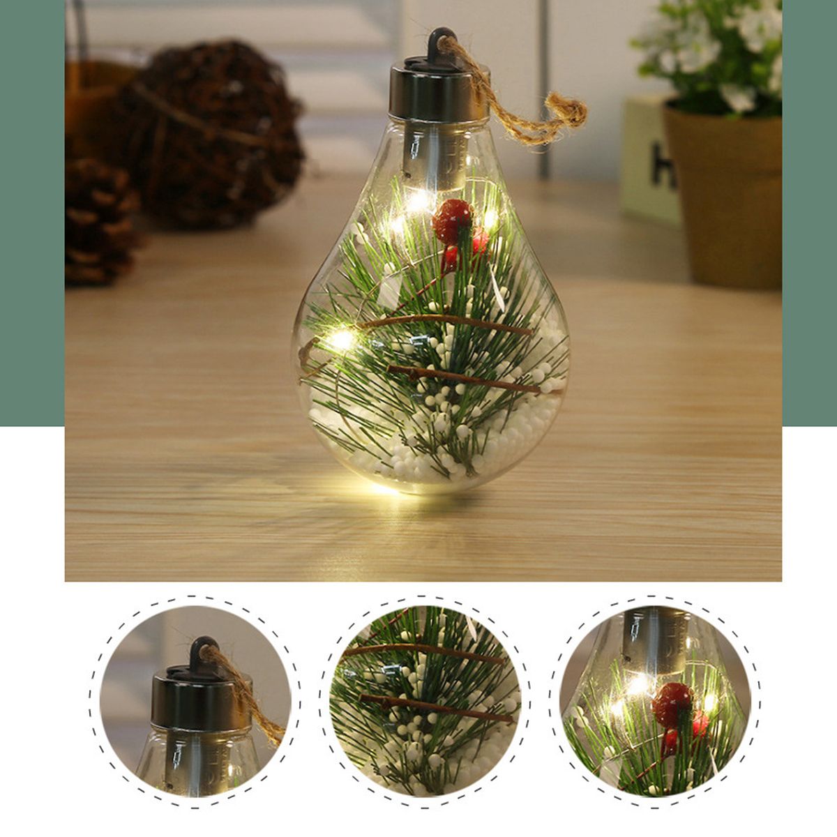 Easy to install and disassemble, high transparent plastic material, overall transparent, warm light, longer lighting time, built-in button, battery replacement is more convenient, reusable, Boxed Christmas ball is easy to store