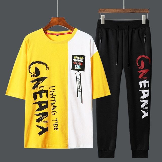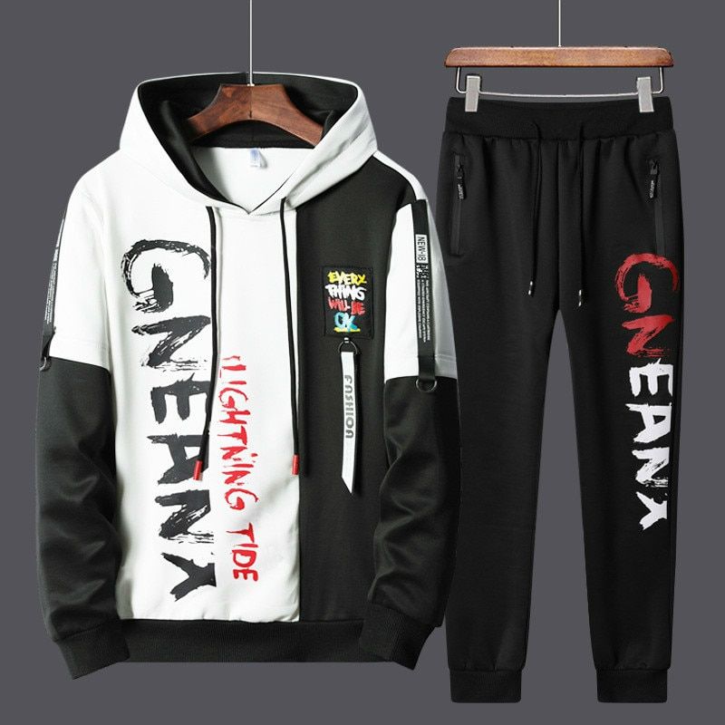 1X 2021 New Man Tracksuits 2 Piecs Sweat Suits Mens Patchwork Printing Sweatshirts Sweatpants Sets Student Husband Sports Clothing