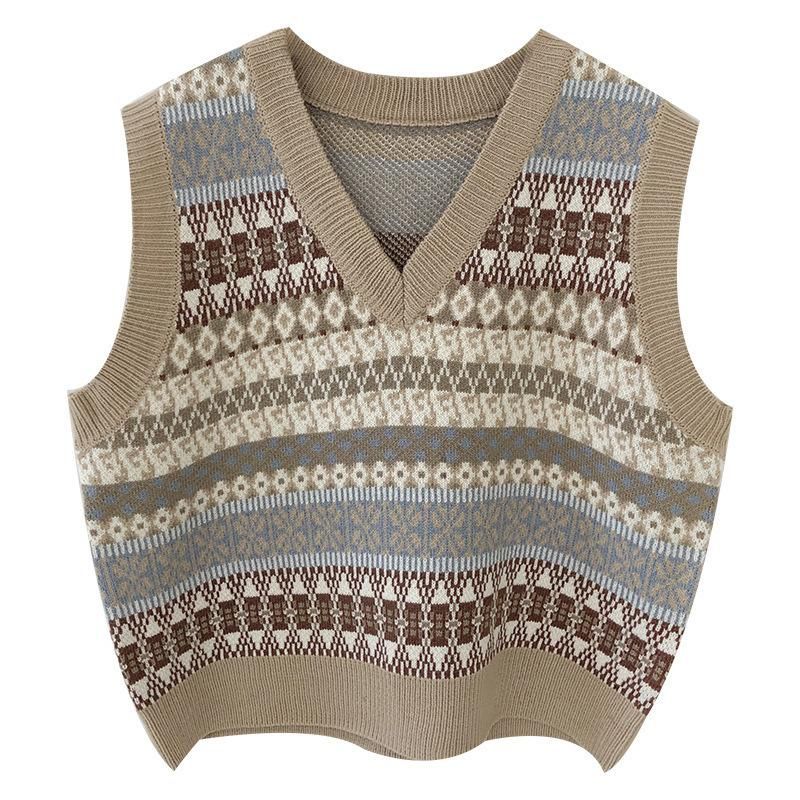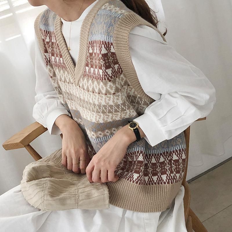 Buy 2021 Sen Sweater Women's V-Neck Overlay Tank Top Autumn Korean Pullover Sleeveless Outwear Academy in Nigeria