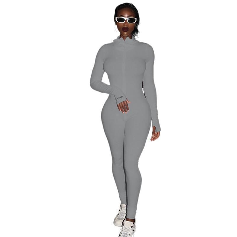 Buy 2021 Set New Spring and Autumn Leisure Women's New High Neck Embroidery Slim Fit Fitness Bodysuit in Nigeria