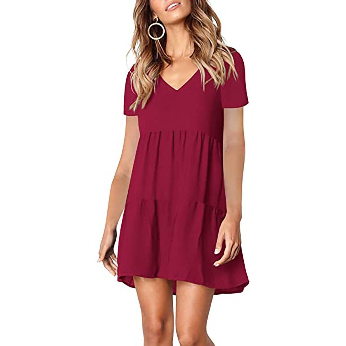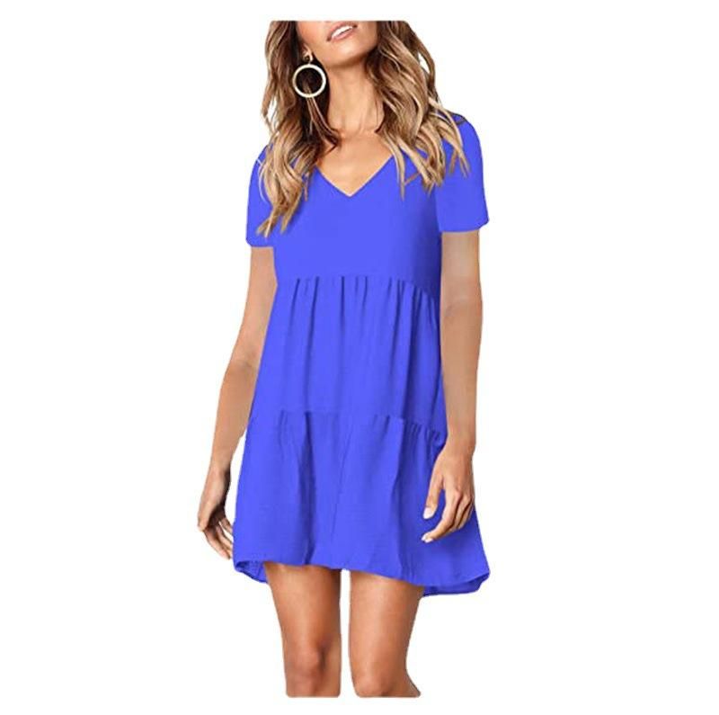 Buy 2021 summer new short-sleeved V-neck women's dress in Nigeria