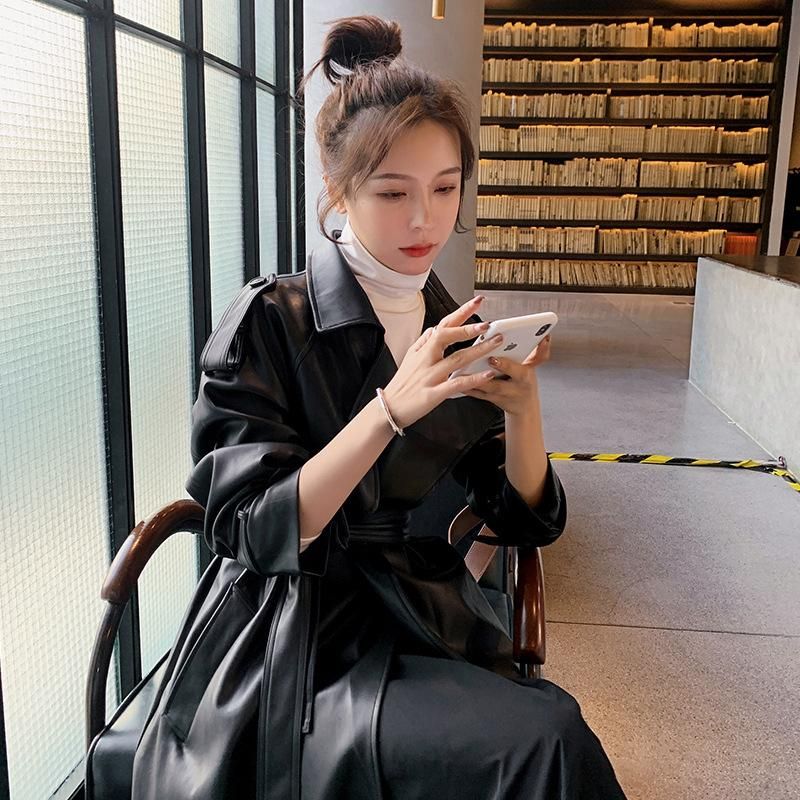 Buy 2022 Autumn New Korean Oversize Fashion Goddess Style Mid length Style PU Leather Windbreaker Style in Nigeria