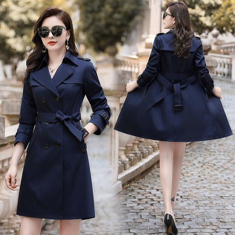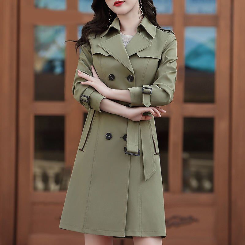 1X 2022 Autumn Women Classic Double Breasted Trench Coats Slim British Style Ladies Outerwear Windbreaker Medium Length Coat