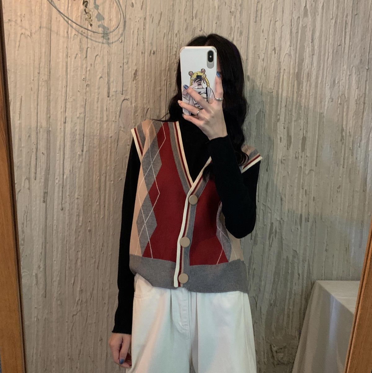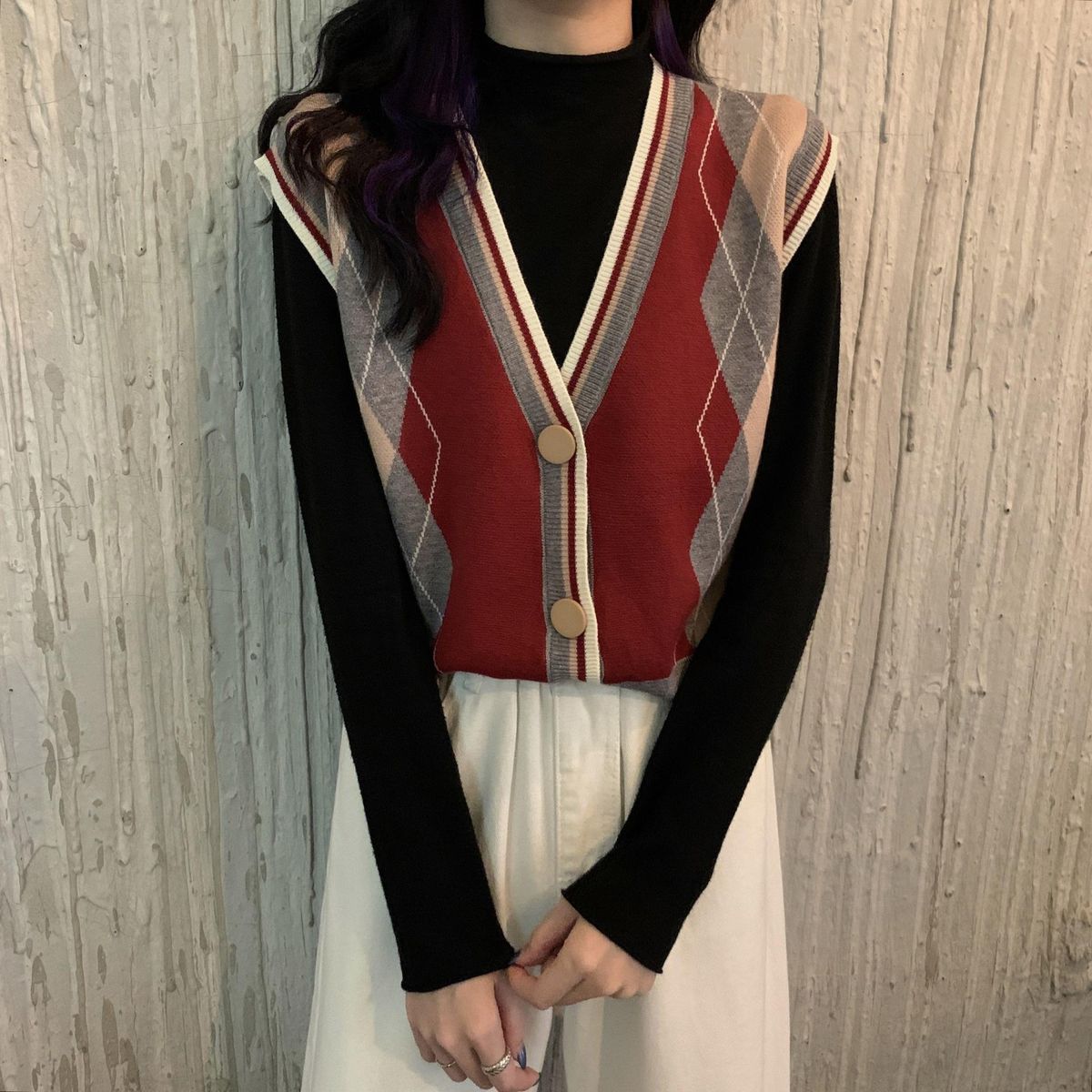 Buy 2022 Autumn/Winter New Contrast V-neck Knitted Vest for Women+High Neck Knitted Bottom Shirt in Nigeria