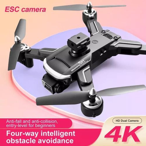 Product Name: S97 Optical Current Adjustable Camera Folding DroneModel: S97Color: Black/OrangeBasic functions: optical flow fixed height, electric adjustment of camera angle, obstacle avoidance on all sides, aircraft foldable, six-way with gyroscope; one-key take-off, one-key landing, ascending and descending, forward and backward, left and right side flight, steering, headless mode , body light/head light (with camera can add functions: gesture photo, video, headless mode, emergency stop, trajectory flight, gravity sensor, music, 50 times zoom, automatic photo)