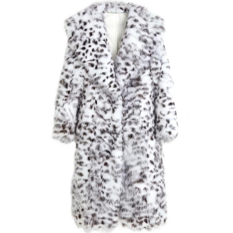 Buy 2022 Faux Fox Fur Grass Coat Women's Mid length Over Knee Fur Coat Youth Black and White Leopard in Nigeria