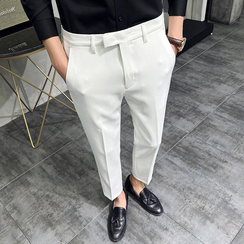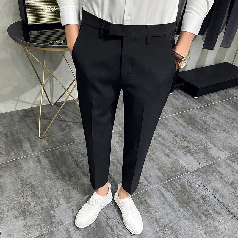1X 2022 Men Summer Business Formal Pant Solid Casual Korean Slim Fit Suit Pants Mens Wedding Social Office Trousers Plus Size 29-38