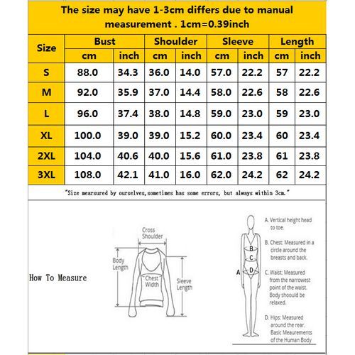 XXL bust:100cm/39.4" sleeve:63cm/24.8" shoulder:39cm/15.4" length:68cm/26.8"