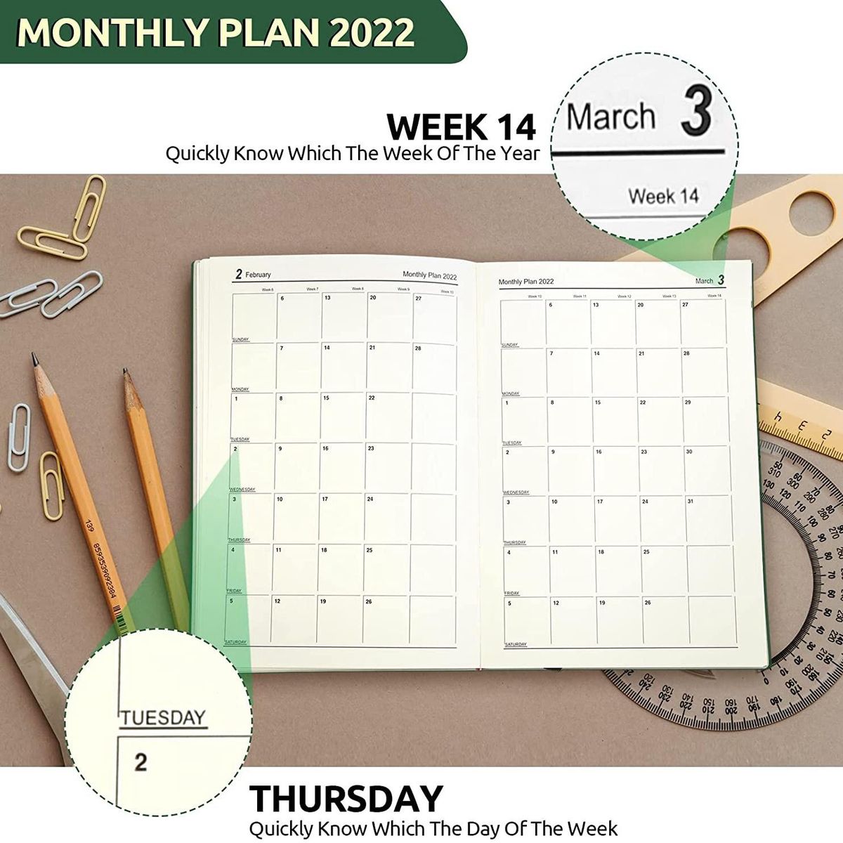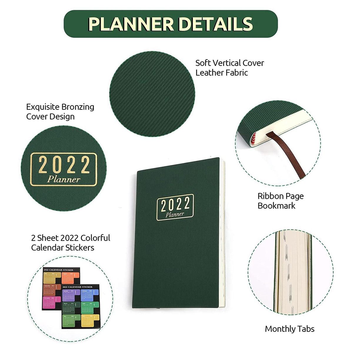 2022 Planner Overview: Jan 2022 - Dec 2022 standard daily planner with 12 months of monthly & weekly pages, convenient for a list, mark, academic plan, scheduling, dating, and so on. There are monthly labels on the side of it, which is easier to find and write.