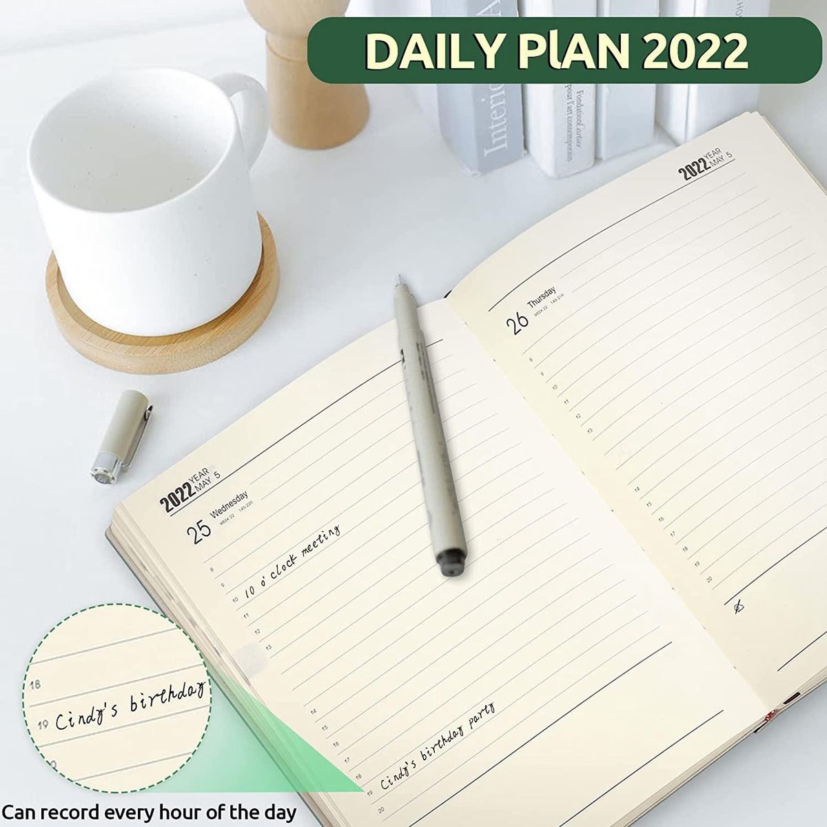 Plan Per Day: We choose a simple design to plan your time. A daily schedule includes a daily schedule with different times of a day, detailed weeks, and plenty of room for notes. It is easier for you to see the week and month you are in and avoid missing important meetings, appointments, classes, etc.
