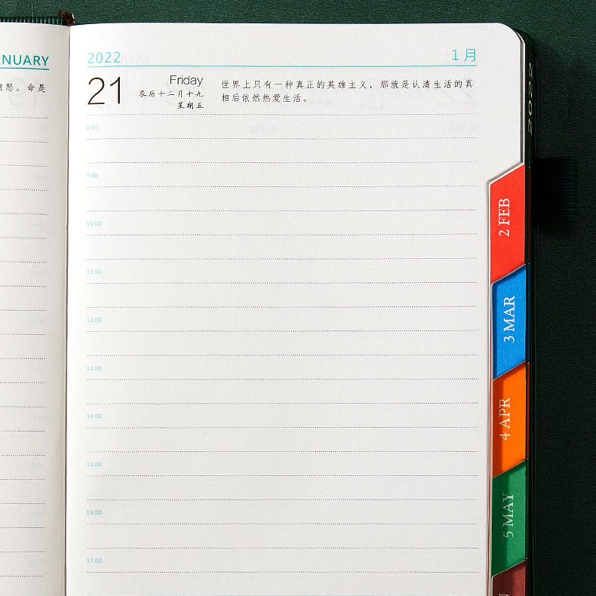 Standard A5 size, for easy year-round planning. The durable soft PU cover is environmentally friendly and soft touch, with simple and elegant design.