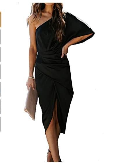 Buy 2022 Thickened sexy one-sided sleeve irregular dress evening dress woman in Nigeria