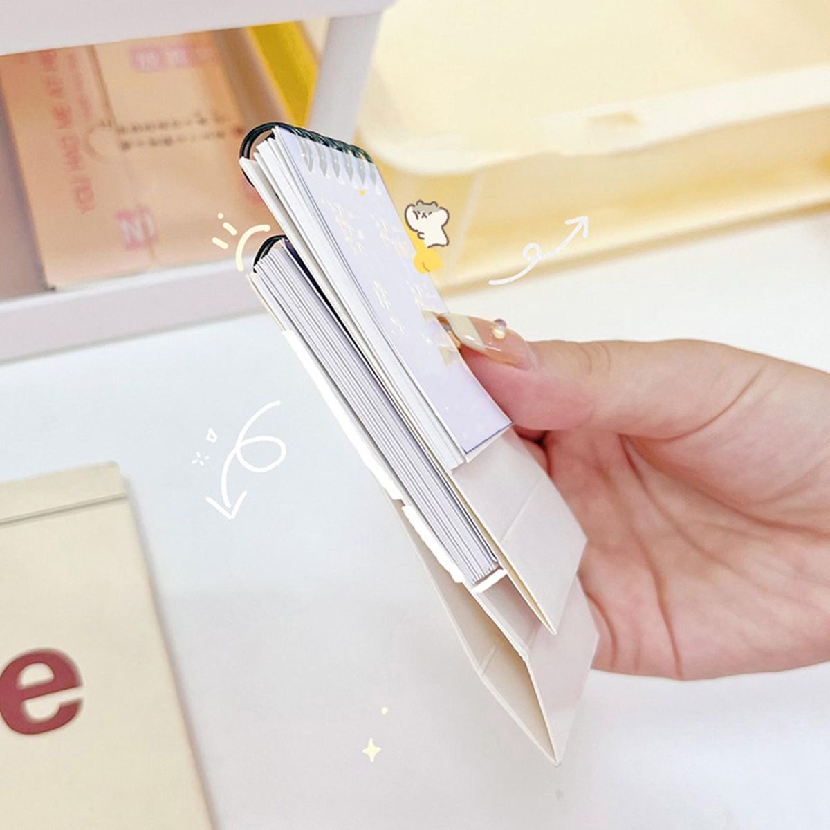 With cartoon pattern, cute and beautiful, doubledesign, 360 degree page flip, thickened hard cardboard, not easy to fold, this mini desk calendar is a good-looking and practical desk calendar.