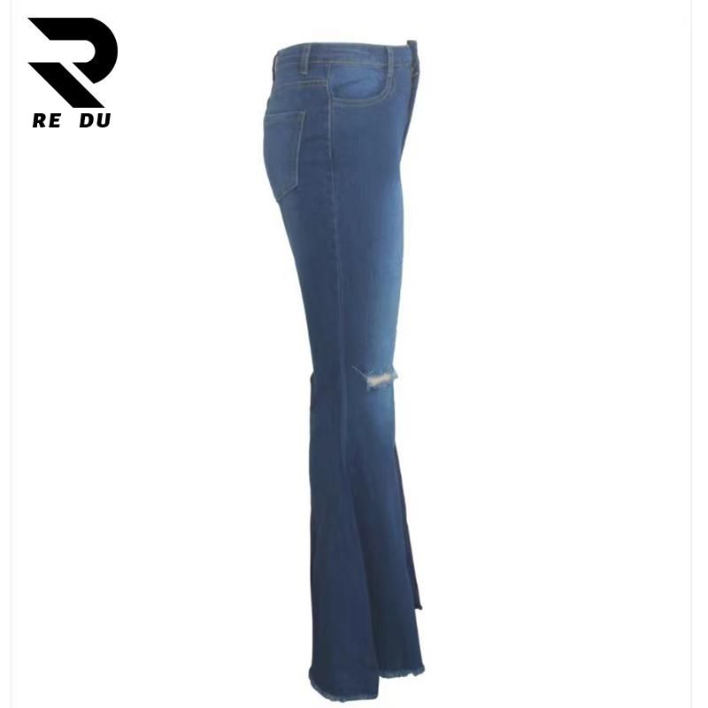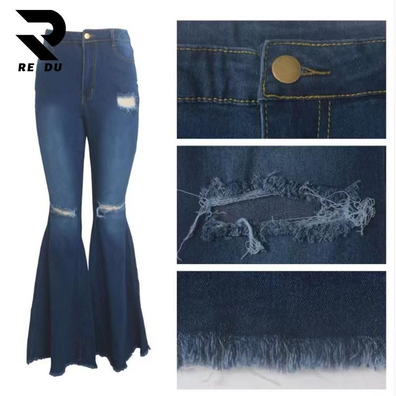Buy 2023 High-Waisted Ripped Washed Flare Denim Jeans for Women - Bell Bottom Style in Plus Size in Nigeria