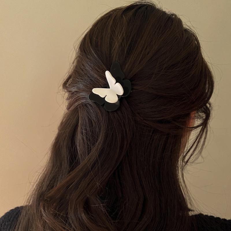 2023 Korean Style Acrylic Black White Butterfly Hair Clips Hairpins For Women Girl Clip Bangs Side Barrettes Hair Accessories