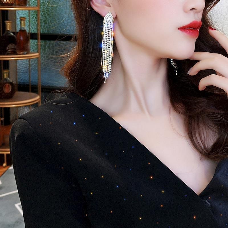 Name: Long Tassels Colorful Rhinestone Non Pierced Clip on Earrings