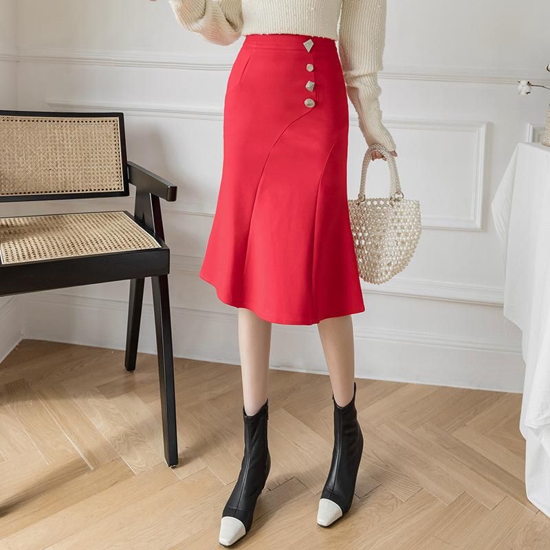 Buy 2023 New Shaped Button Sexy Half Skirt One Step Dress Fashion Casual Mid length Professional Wrap in Nigeria