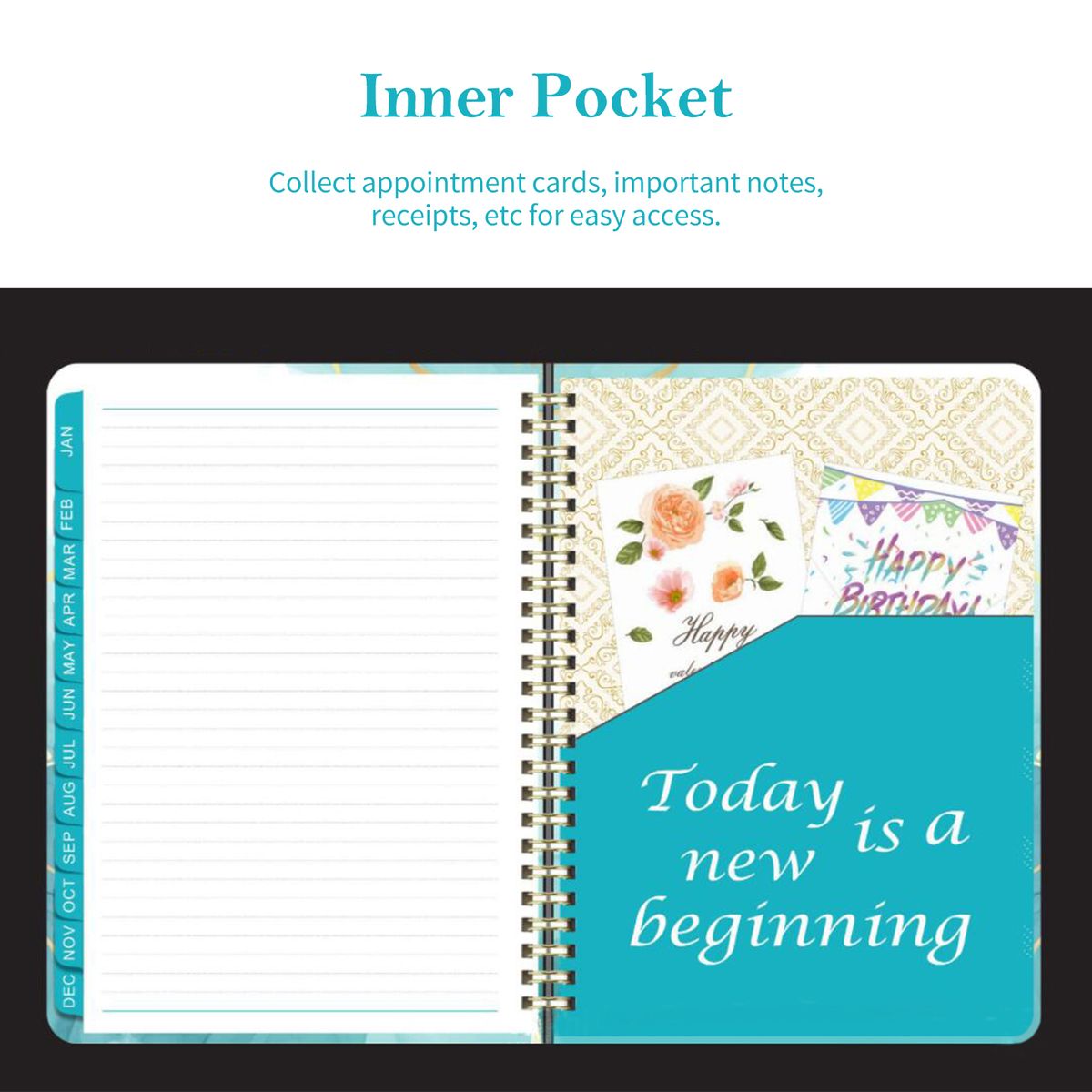 All our journals come with a back pocket to store appointment cards, important notes, receipts, etc for easy access.