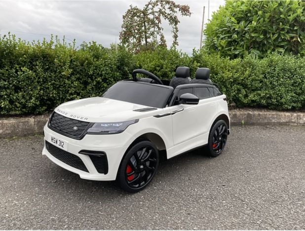 RANGE ROVER VELAR Ride-on car with parental remote controls, making it fun for you and your child. The 12v VELAR Kids Sports Car is just a superb looking, well-constructed ride-on with easy assembly and top quality paintwork - Cool SUV.. Made under official license from Mercedes this is a real show stopper and sure to be the pride and joy of any child, complete with 2.4G Remote control and an authentic looking spare wheel at the back Complete with an MP3 plug in your little one can borrow your iPod to blast out their favourite tunes. Features: Working lights Opening Doors Strong Tires Large single seater and is fitted with a seat belt for additional safety A realistic scale replica of a real RANGE ROVER VELAR Fully licensed by