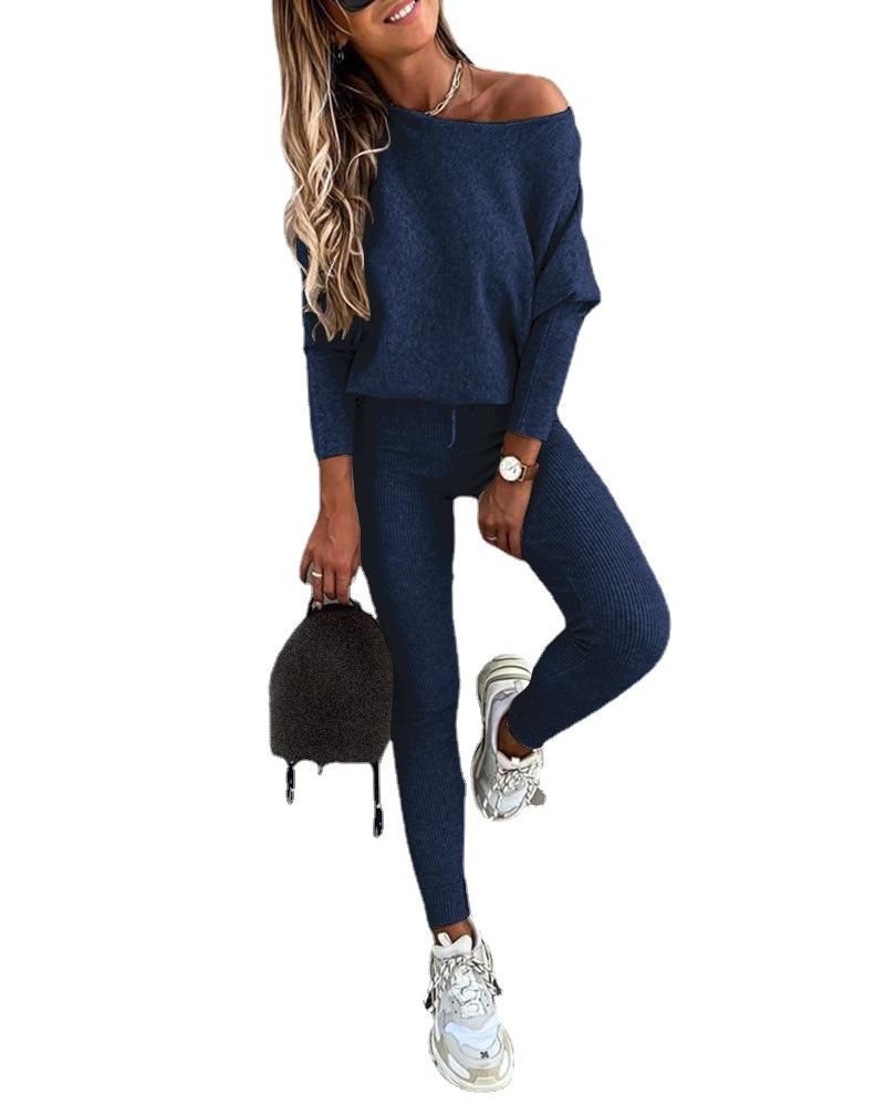Buy 2023 Solid Color Fashion Casual Lace Up Oblique Shoulder Sports Pants Long Set Women-5002 in Nigeria