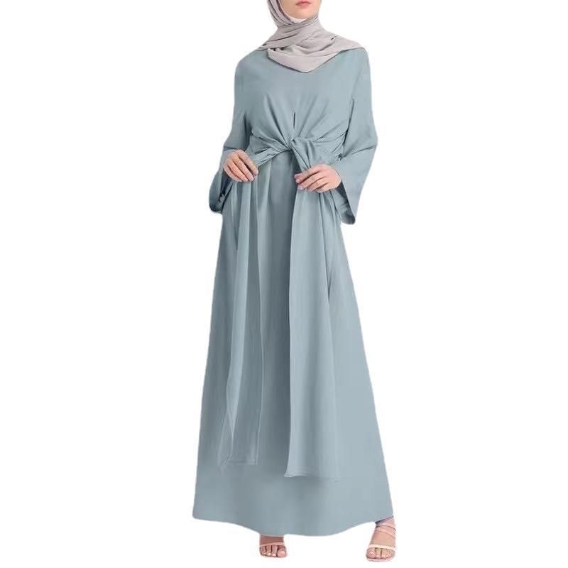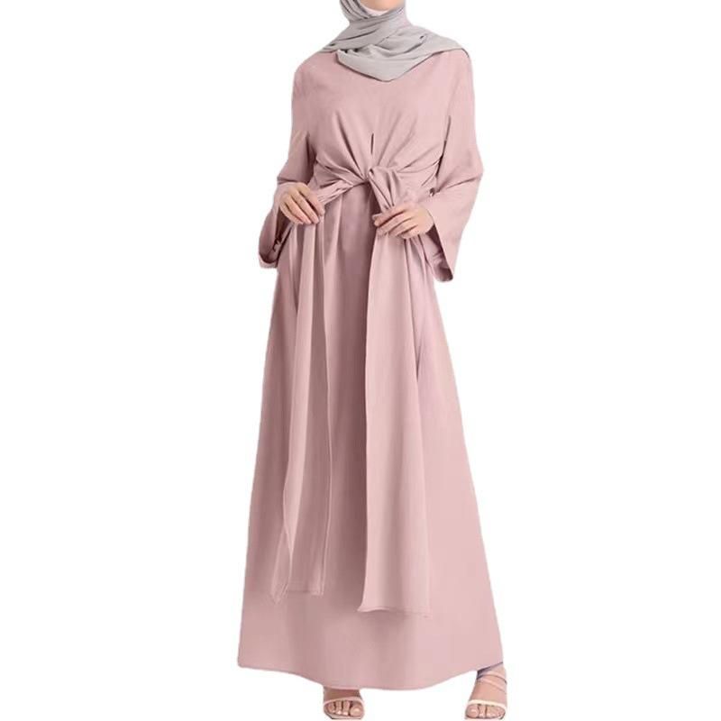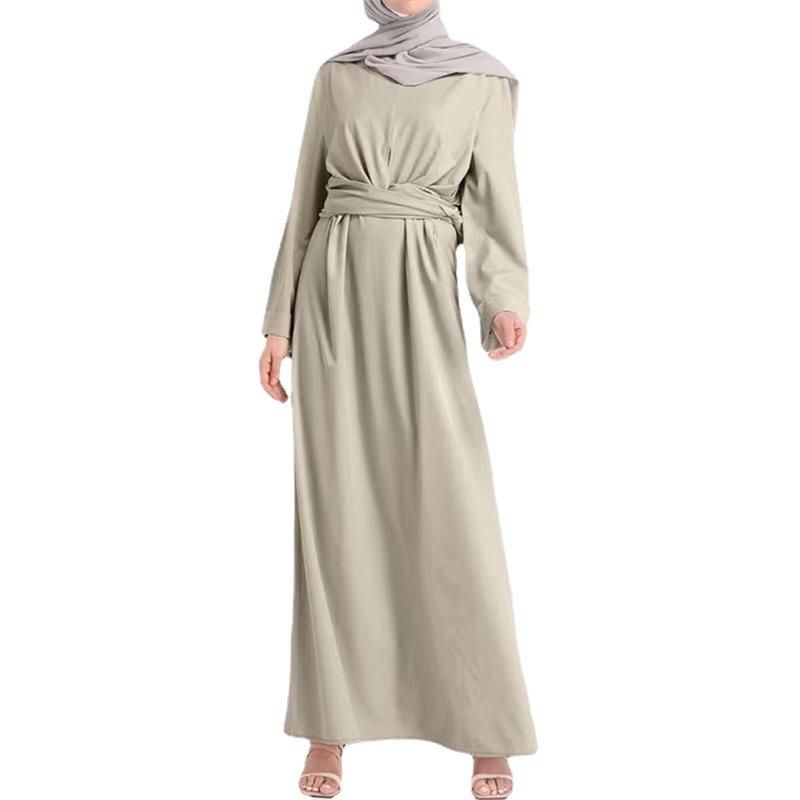 Buy 2023 Solid color long lace up muslim women's gown dress in Nigeria
