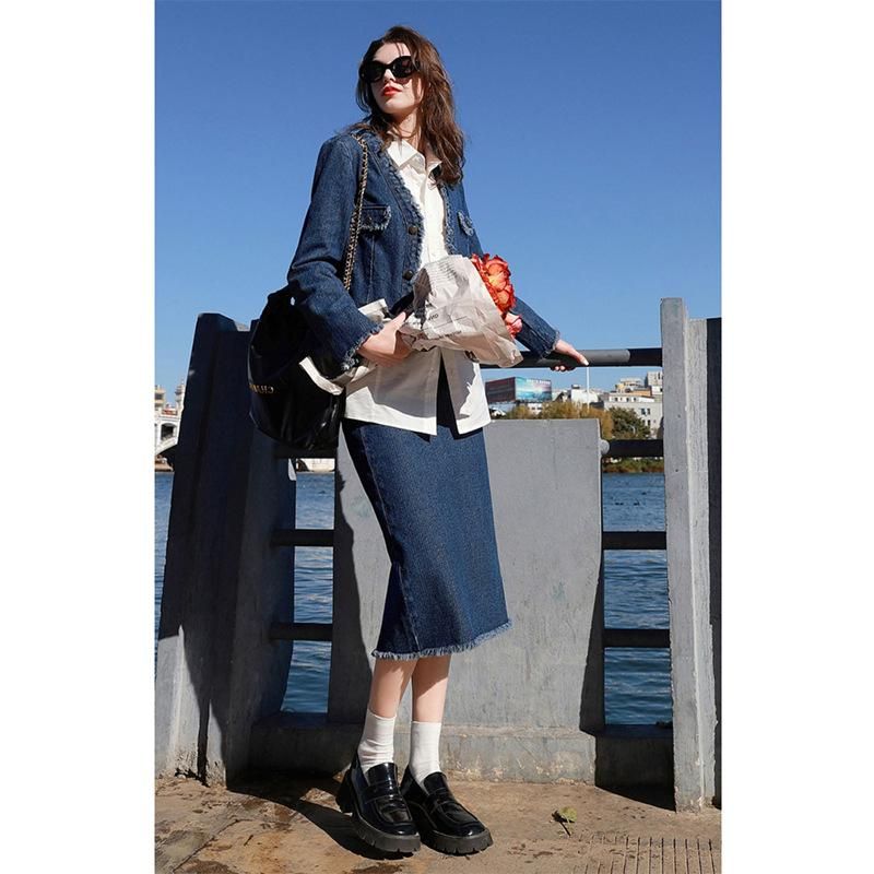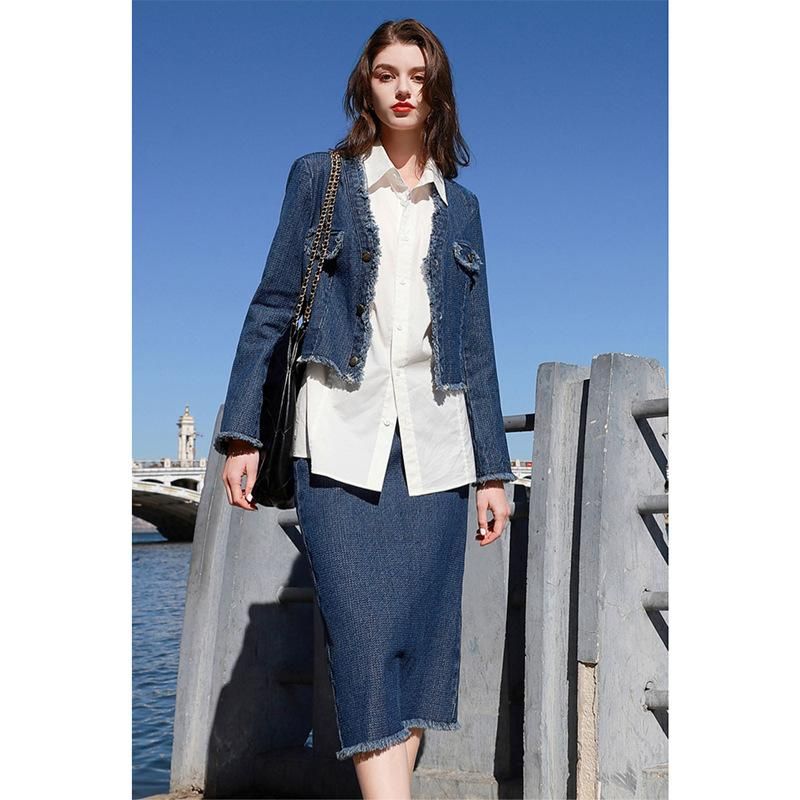 Buy 2023 Spring New Two Piece Set Small Fragrant Denim Short Coat Half Skirt for Women D381C2023600 in Nigeria