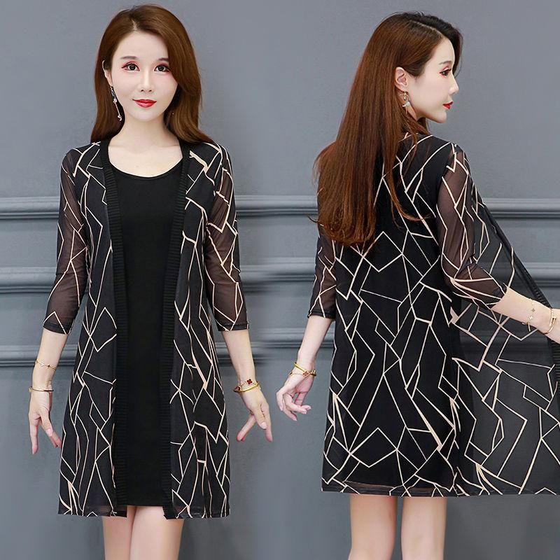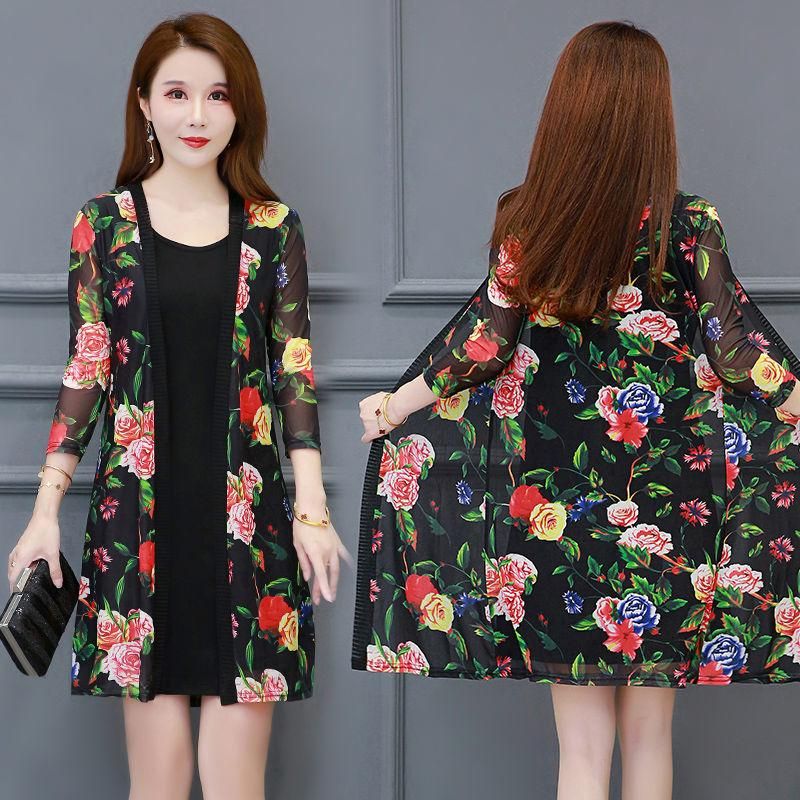 Summer New Mesh Women Sun Protection Clothing Female Long Beach Cardigan Wild Printing Thin Clothing Plus Size 5XL E35