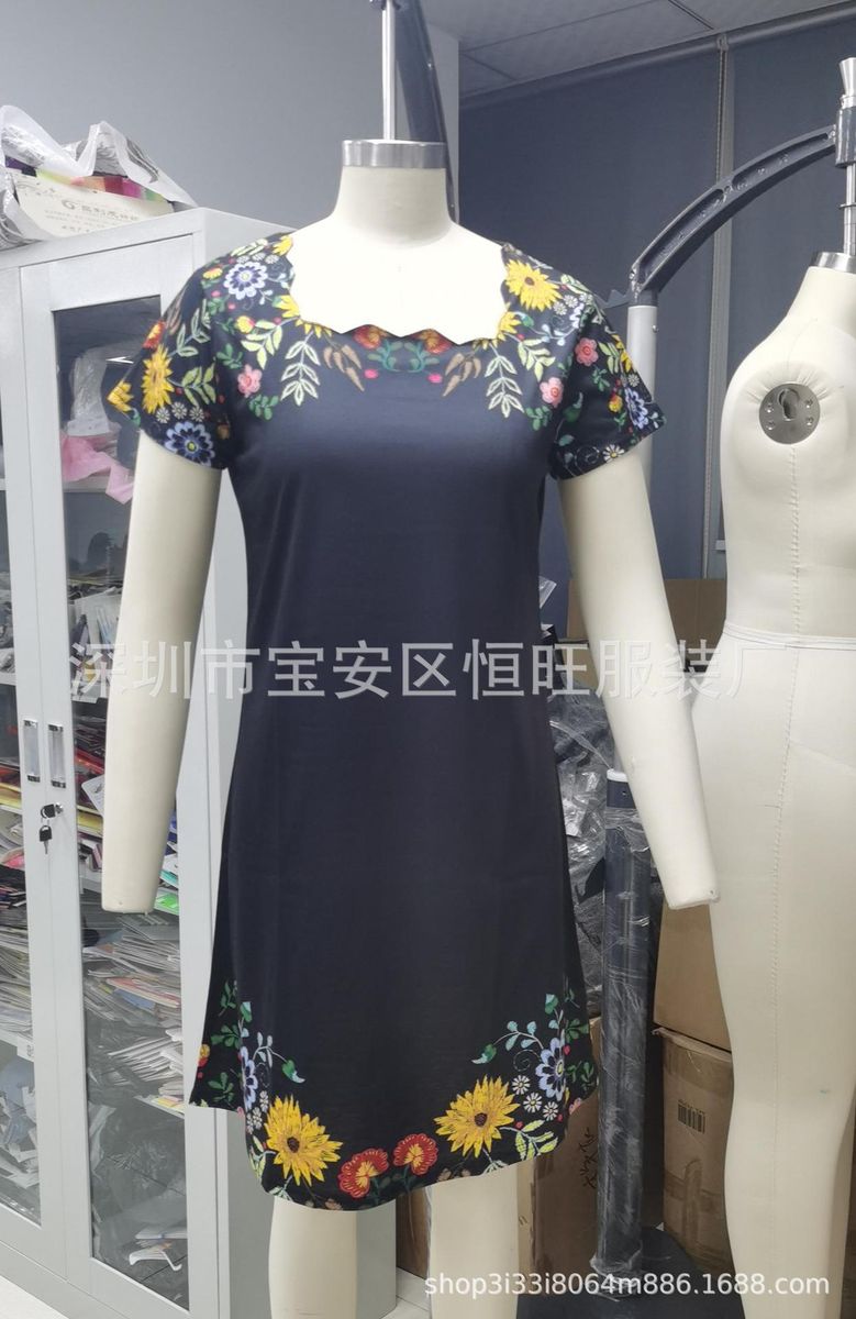 Buy 2023 Summer New Women's Wave Neck Printed Short Sleeve Dress in Nigeria