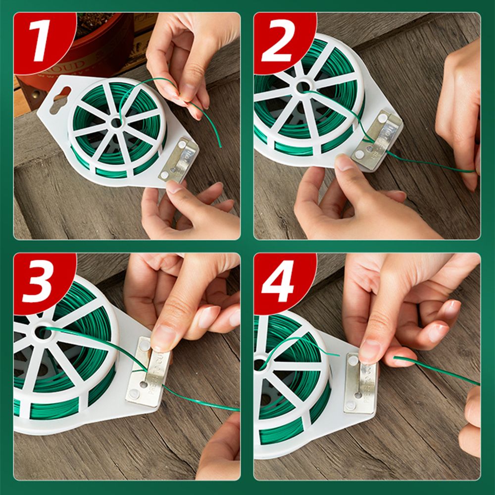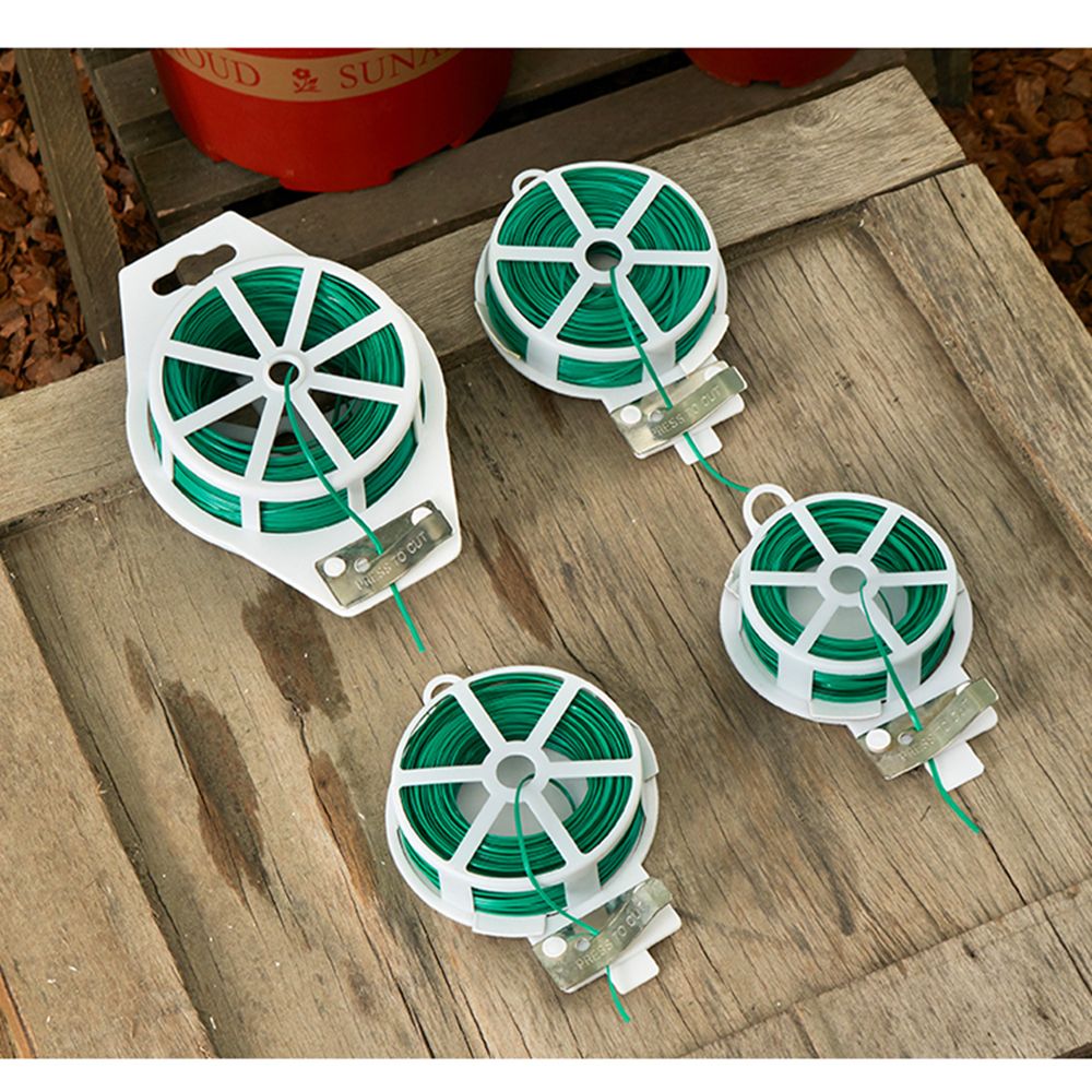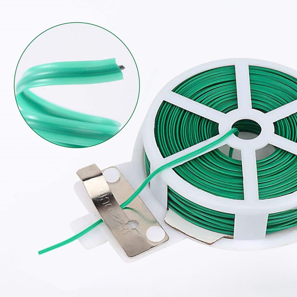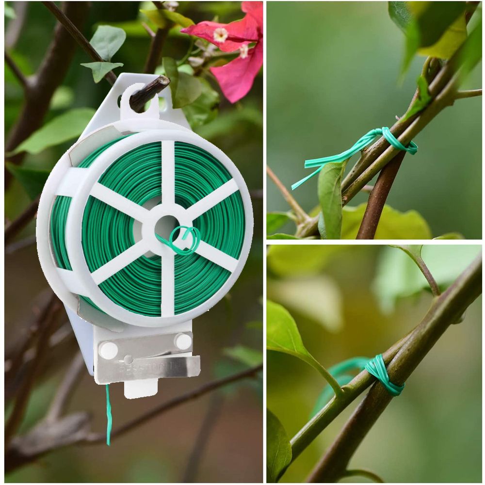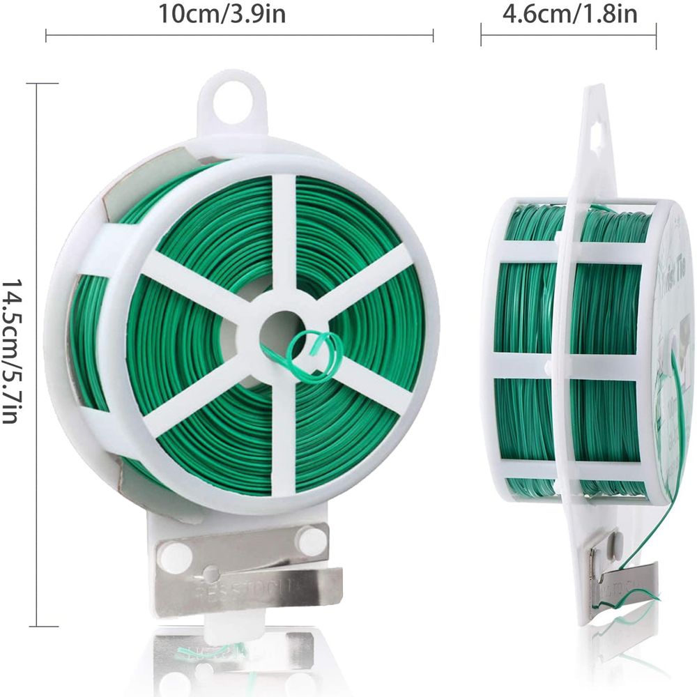 1. Product weight and cord length: The plant ties are compact, 4 types: 20 meters/75g, 30m/85g, 50m/115g, 100m/125g 2. Easy to Use: The product has a built-in cutter, which can be cut according to the length you want, which is convenience and does not hurt your hands. 3. Gardening Use: Can be used as a garden s to fix plants, vines, and flowers on the trellis to ensure the health growth of plants 4. For home and office: It can be used to bundle earphone cables, computer cables, and mobile phone cables to keep the cables tidy. 5. Product features: The wire has a finene of 0.2 mm and a plastic coating on the outside, which can effectively protect the wire from rust