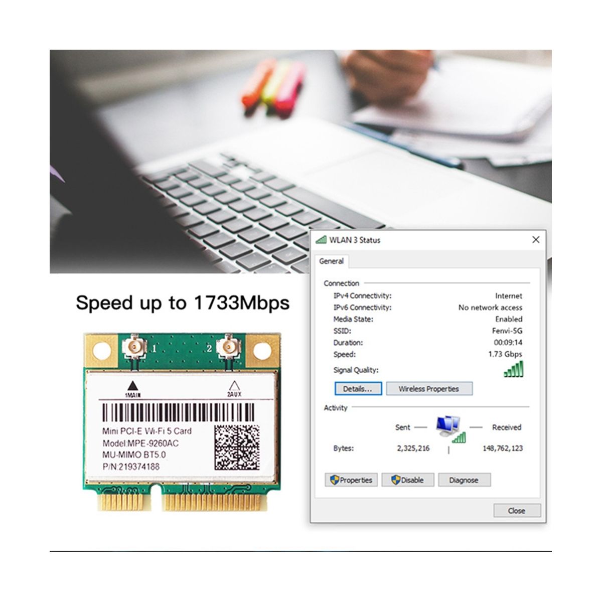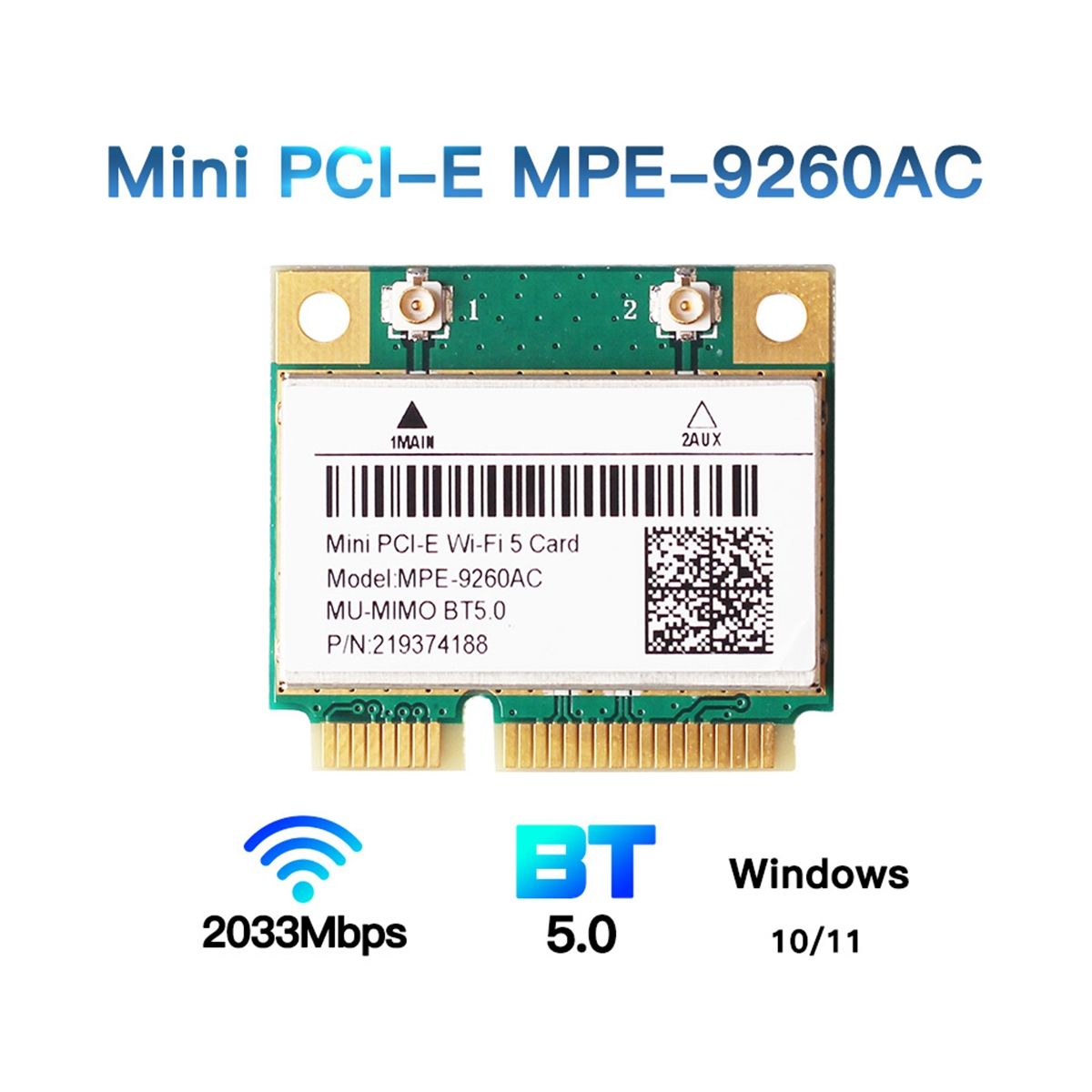 Buy 2033Mbps Mini-PCIE Card 9260AC 2.4G/5GHz BT 5.0 Wlan WiFi in Nigeria
