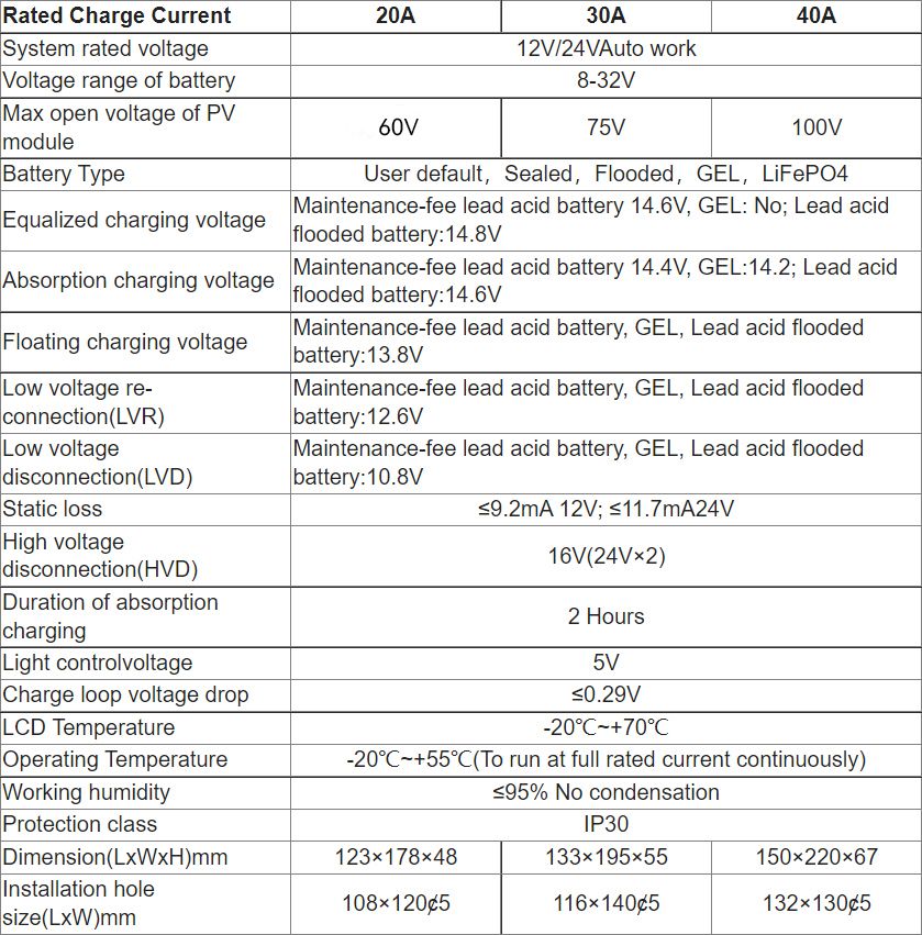 Thank you for selecting MPPT series solar charge controller with the most advanced MPPT control algorithm and the maximum power point of the pv array can be quickly tracked in any environment so that it can get the maximum energy from the solar panel and significantly improve the utilization of energy in solar system. The machine has the dual display function of LCD and Remote header (optional) and standard communication interface, convenient for user extension application and satisfy different monitoring needs to the maximum extent. It can be used in communication base station, home power supply system, traffic light, solar street lamp, courtyard lamp systems, etc.