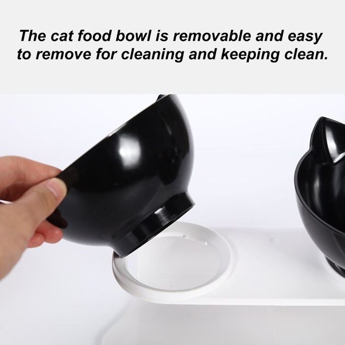 Double bowl design, cat food bowl and water bowl two in one, you can use one bowl for water and the other for feeding, or feed two cats at the same time.