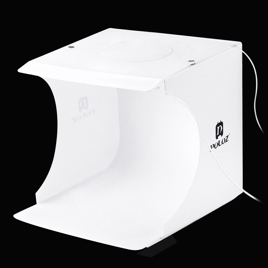 PULUZ 20cm Include 2 LED Panels Folding Portable 1100LM Light Photo Lighting Studio Shooting Tent Box Kit with 6 Colors Backdrops (Black, White, Orange, Red, Green, Blue), Unfold Size: 24cm x 23cm x 22cm