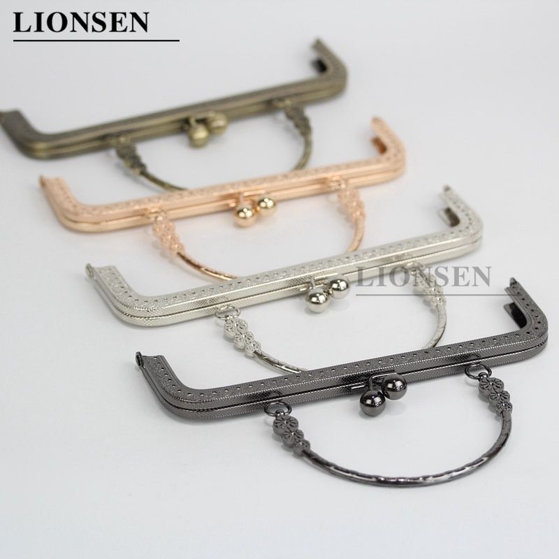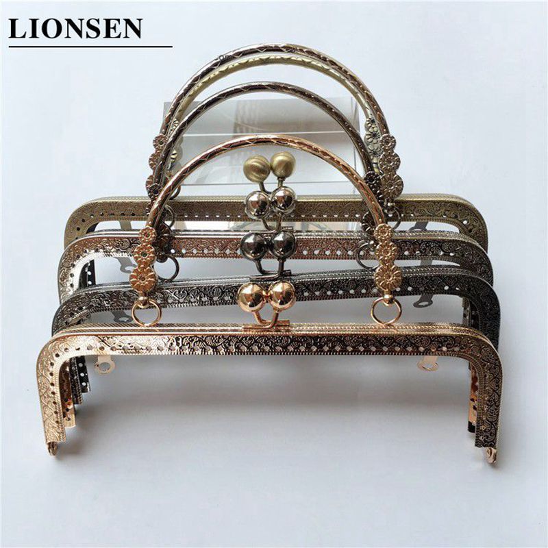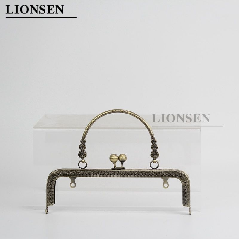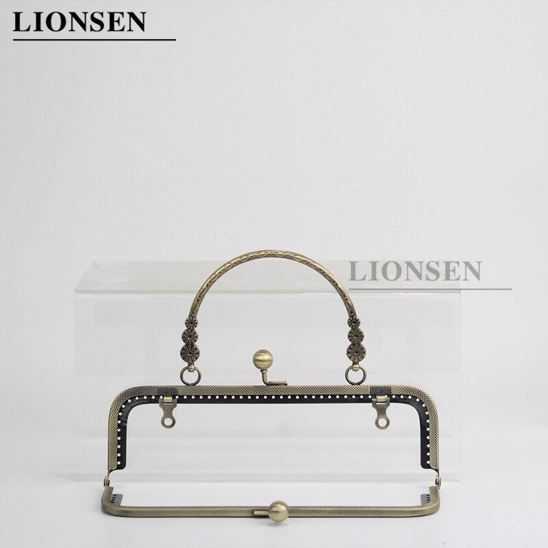 1X LIONSEN 20CM Metal Purse Frame Handle Clutch Bag Accessories DIY Kiss Clasp Lock Bronze Eming Square HandBag Hardware