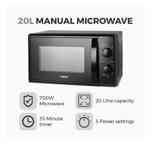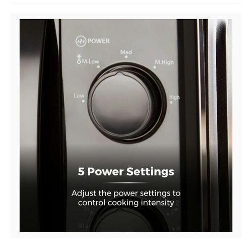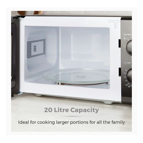 This microwave has 700W output and a 35 minute timer, with 5 different power levels to choose from, letting you heat up a wide variety of different meals, including soups, ready meals, pizza, vegetables and pasta, within a matter of minutes.Cook From FrozenNeed a quick bite to eat but all of your leftover spag bol or curry is in the freezer? Not to worry, the handy defrost function on this microwave will let you cook straight from frozen, so you can start enjoying your meal in no time.Large 20L CapacityThe 20 litre capacity makes this microwave perfect for single and family homes. It features a simple turn dial and easy pull handle on the door.