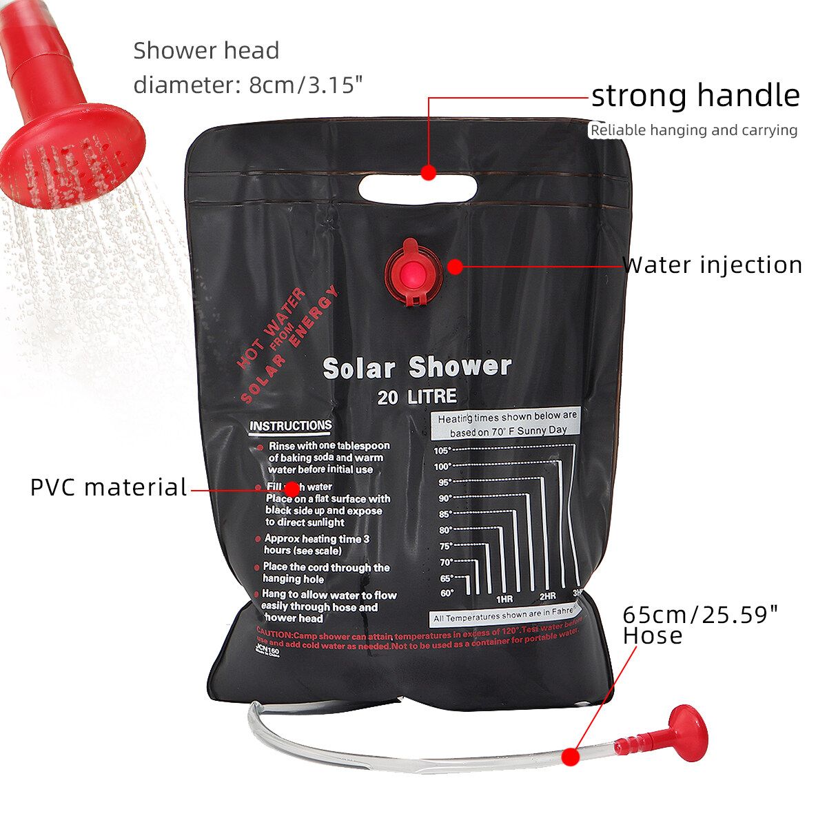 ◆Portable camping shower bag with strong handle for reliable hanging and carrying. Hang it on tent or tie on a tree branch.Great for camping trips and during emergencies when hot water isn't available.