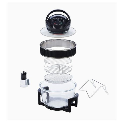 Accessories included:Extender ringLid standOil bottleTwo mesh traysHigh and low rack set of tongs