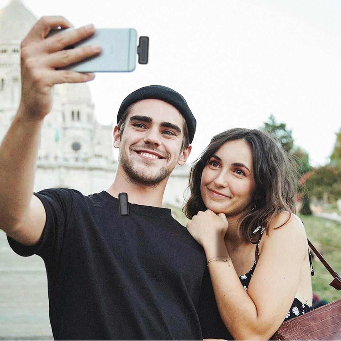 The wireless lavalier microphone with charging case is ideal for live entertainment and recording, especially for theatre shows and live concerts. With 20M/65ft barrier-free reception, it allows you to keep in contact with your audience; intelligent noise cancellation dual microphone provides clear audio with high sensitivity receiver. Widely compatible with iOS, Android smartphones and tablets; clip-on design true free hands makes it convenient for people to wear; 360-degree panoramic sound pickup ensures that every detail is captured in crystal clear sound quality; highly sensitive receiver provides mind blowing stereo effect and perfect for live show/interview/live streaming/Vlog short video. The Wireless Lavalier Microphones are a must-have for anyone who needs to record clear and crisp audio. With the portable charging case, you can use this microphone on the go without worrying about running out of battery. You can easily charge the microphone by simply putting it into the charging case.