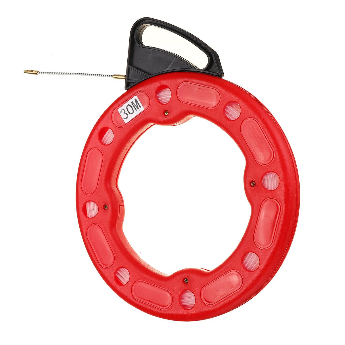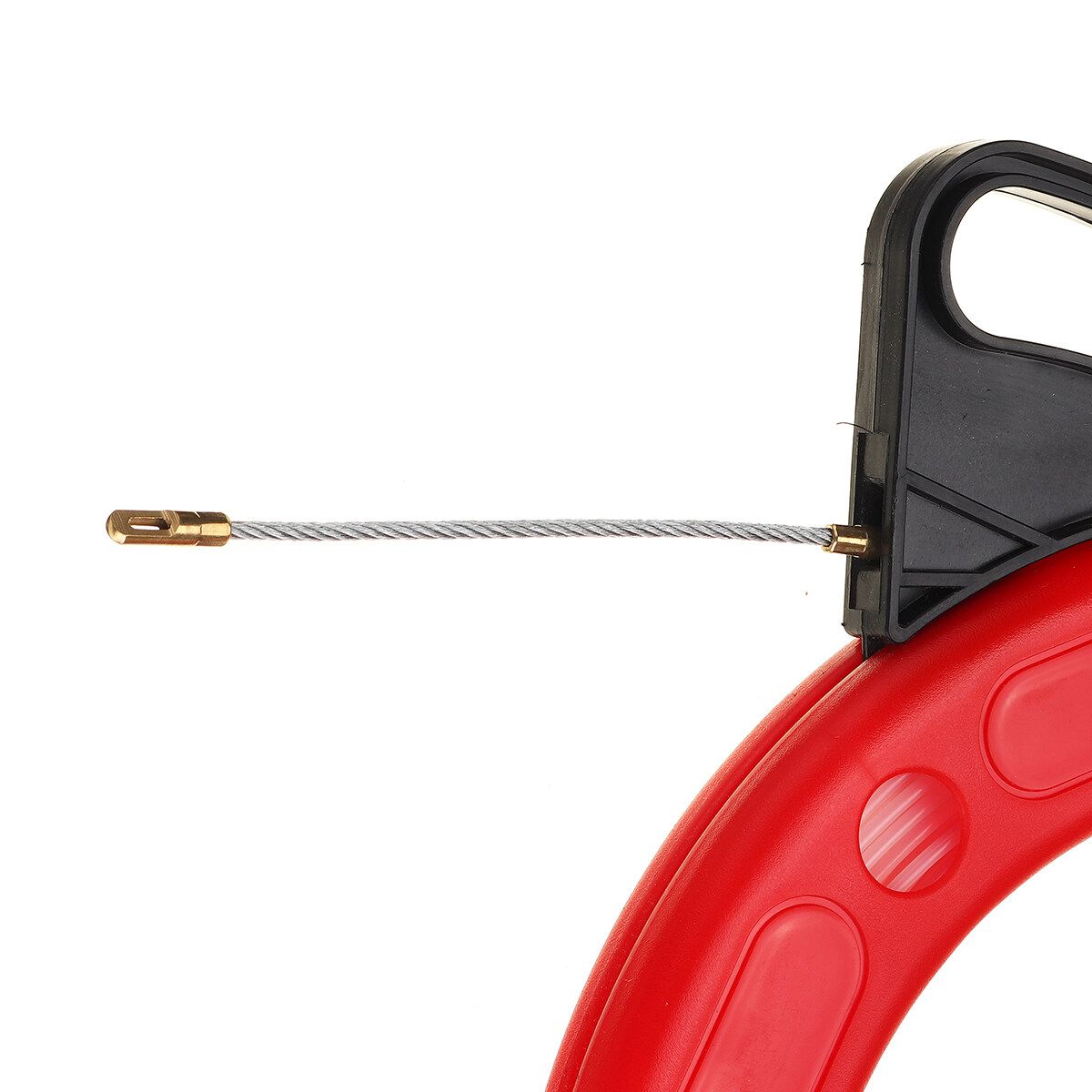 Features:* 30M flexible spring: The steel fish tape with high impact plastic case has a durable and comfortable grip for easy carrying. The handle comes with a built-in thumb lock for pulling electrical or communication wires. Handle lever assists on rolling the cable back in. The tape is with a pulling loop at the end.* Perfect for snaking/thread or pulling cables and wires through or behind ceiling, walls/drywall, conduit, PVC, pipe, vent, duct, hose, under carpet or insulation and more.* Use for your interior and exterior electrical site wiring like, outlet, plug, socket, light fixture, ceiling fan, dimmer, switch, short runs installing electrical box, electrical panel, subwoofer box, switch box, junction box, cpu, breaker box, receptacle box, transformer, doorbell, , camera, telephone/internet line or cable TV coax.* Also great for your vehicles wiring like for alarm, remote starter, entry, dash/rear view backup camera, radardetektor, wifi, bluetooth, entertainment system, stereo, horn, audio speakers, radio/cassette/cd/mp3/dvd player units, usb port, gps navigation, fog lights, headlights, and more for your home, house, car, truck, boat, RV, ATV, UTV, and so.* A must-have for any wire and cable installation.