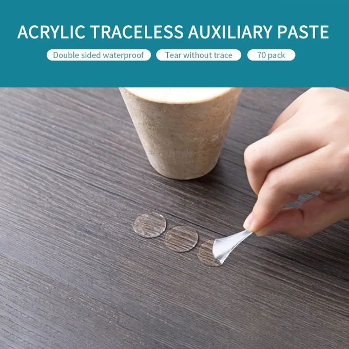 Strong Double sided Adhesive Stickers suitable for use on all smooth surfaces including tiles, wood, rubber, marble, glass, car body and other smooth surfaces.