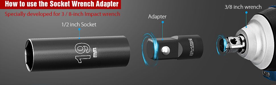 3/8\' to 1/2\'\' SOCKET WRENCH ADAPTER: Engineered for use with 3/8\'\'impact wrench. Its spring-loaded detent ball securely helps latch onto sockets, preventing them from being dropped.