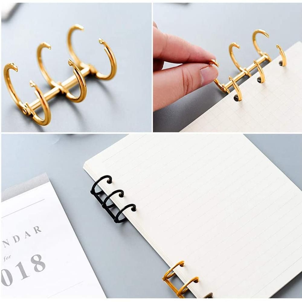 3 Holes Gold Loose Leaf Binder Book Rings on Post, Snap Split 3-Hinged Rings, Book Rings for DIY Travel Diary, Notebook Diary Photo Al Binding