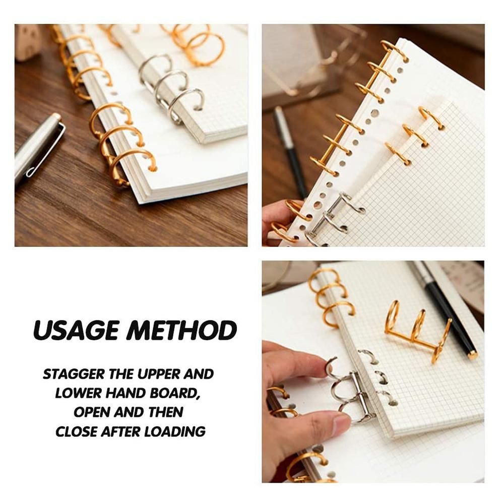Flexible to Use Each gold book ring is well-designed, namely, it can be split into 2 halves and connect with a metal swivel rivet tightly; So the book binders lock safely and tightly enough.