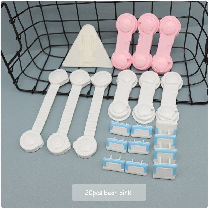 1X 20pcs Baby Safety Lock Cartoon Bear Home Child Stopper for Door Refrigerator Lock Plastic Chest of Drawers Baby Goods Safe Lock